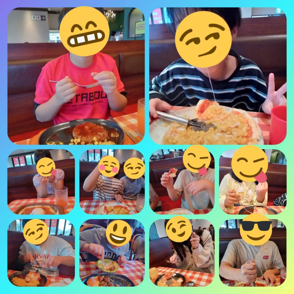 ピザやドリア、ハンバーグステーキなど、自分が食べたいものを選び一緒に食べました!🍴😄 ピザ🍕のチーズ🧀が伸びたり、好きなお肉🍗を頬張るように食べたりと美味しそうに食べていました!😋✨ サイゼリヤも子どもたちに人気ですね!🍽️🎊😊