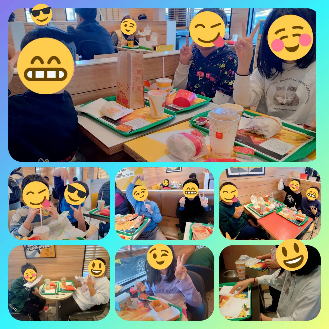 好きなメニューから自分で選び、ハッピーセット🍟やハンバーガー🍔のセットメニューを注文する子、中にはデザートにマカロンを食べている子もいました!😋✨ 初めてマカロンを食べる子は「美味しい!」と好評でした!😋 マックはみんなに人気ですね!😊✨