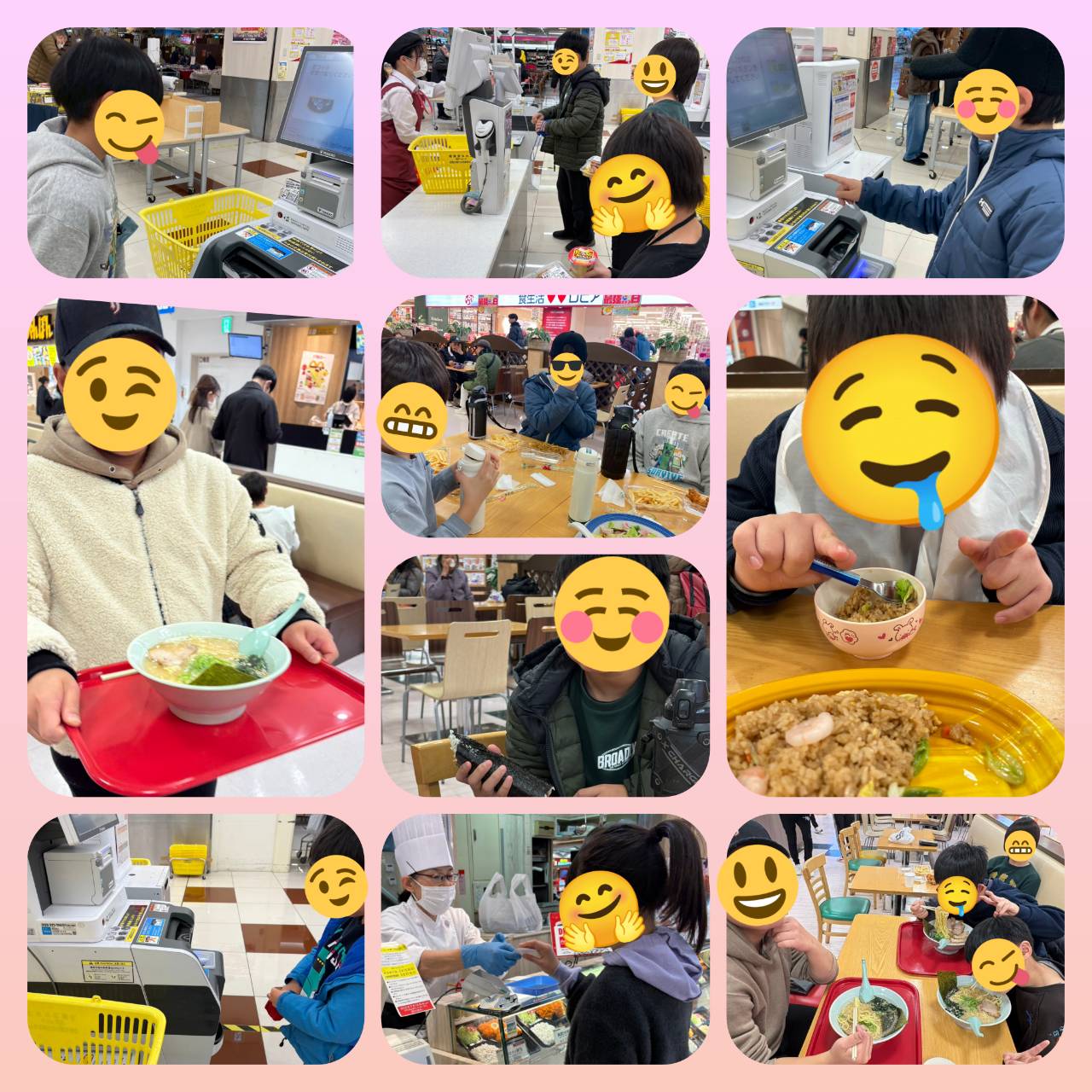 フードコートのラーメン🍜やロピアの惣菜🍟など、自分たちが食べたい物を選び🤔美味しそうに食べていました!😋✨ デザートにプリン🍮やゼリーを買う子もいました!食べたいものが買えて満足そうな様子でした!😊🍜